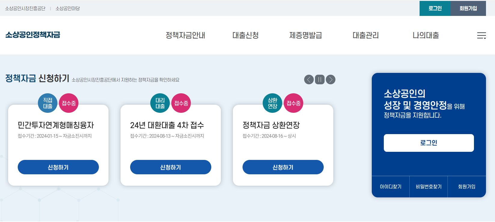 정책자금 프로그램입니다.