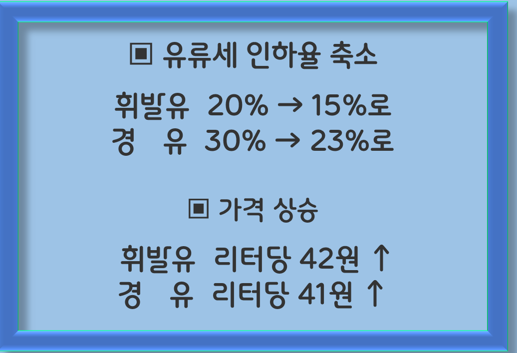 유류세 인하가 연장됐으나, 인하율 폭이 축소되어 현재보다 유류가격이 상승하게 되는 것입니다