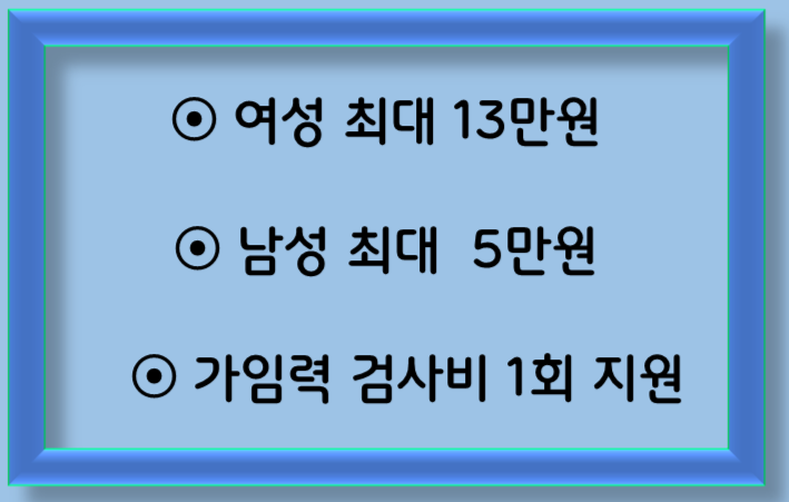 지원금액은 여성 최대 13만 원, 남성 최대 5만 원으로, 1회 지원됩니다. 진찰료와 추가 검진 비용 등 지원 금액을 초과하는 비용은 개인이 부담해야 합니다. 이 지원금은 가임력 검사를 통해 부부의 건강 상태를 미리 확인하고, 임신과 출산의 위험 요인을 파악하는 데 사용됩니다.