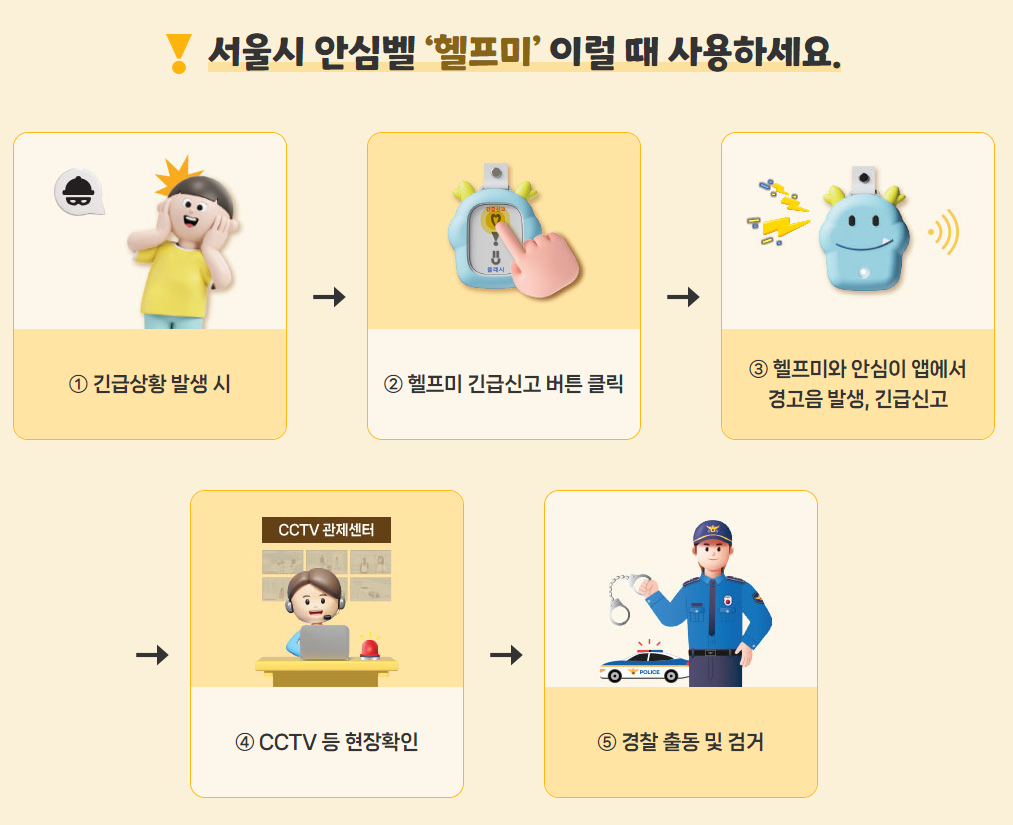 ‘헬프미’는 안심이앱과 연동해 긴급신고가 가능한 호신용 안심벨입니다. 시민들의 일상 안전을 강화하는 ‘헬프미’, 언제부터 신청할 수 있고 신고체계는 어떻게 되는지 함께 알아보겠습니다.