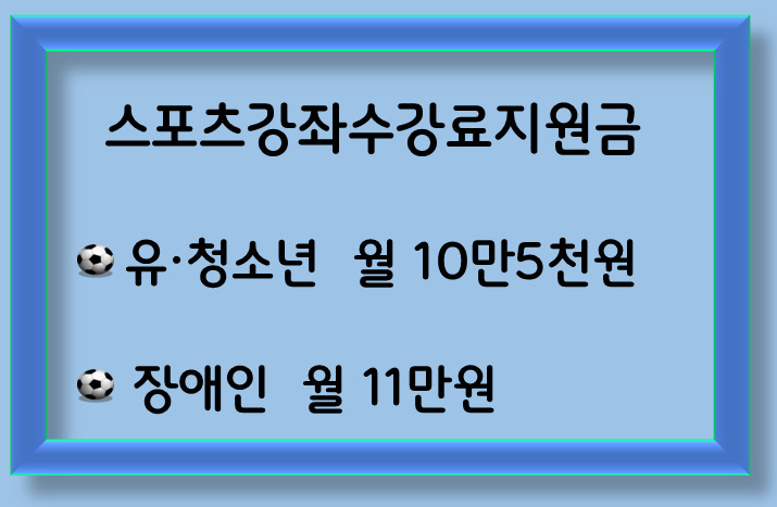 스포츠강좌이용권을 통해 유·청소년은 월 10만 5천 원, 장애인은 월 11만 원의 스포츠 강좌 수강료를 지원받습니다.