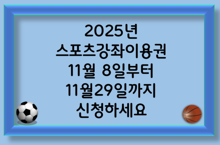 2025년도 스포츠강좌이용권 신청 기간을 놓치지 말고, 많은 분들이 혜택을 받을 수 있기를 바랍니다.